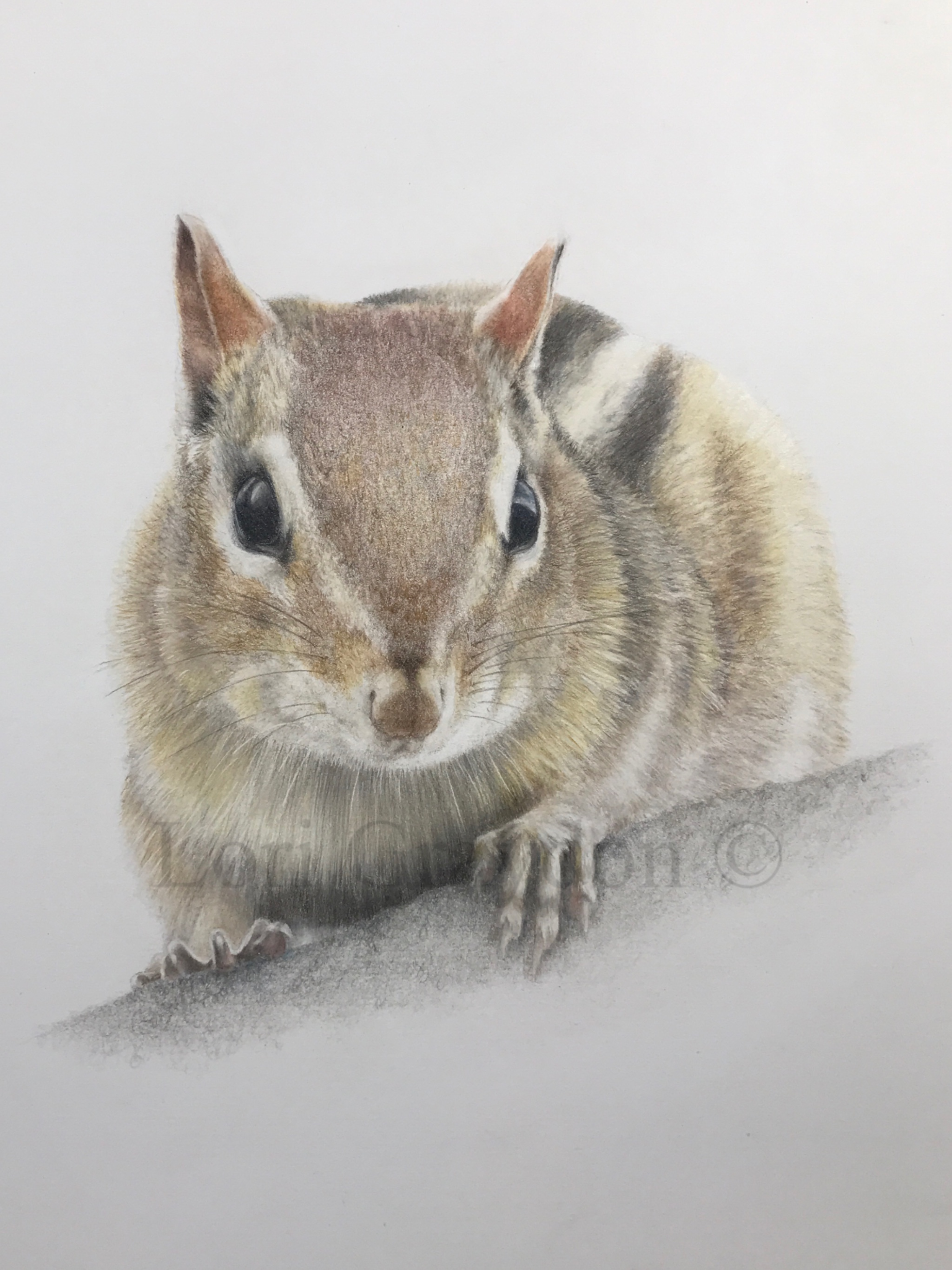 My Mom’s backyard was full of wildlife.  There were rabbits, squirrels, a groundhog and a skunk (who used to exchange homes in midseason).  There were also chipmunks.  And this fellow is one of the many.