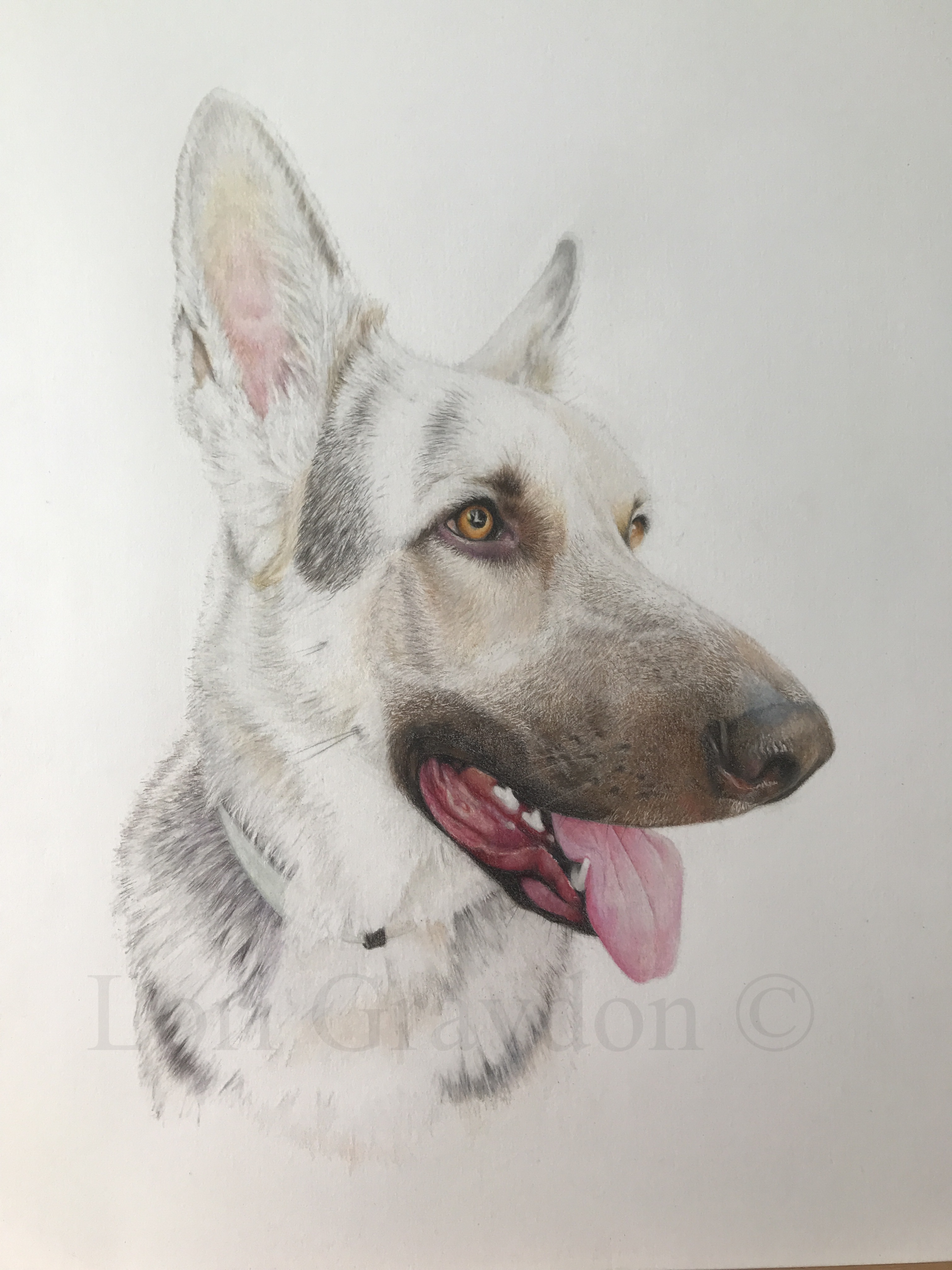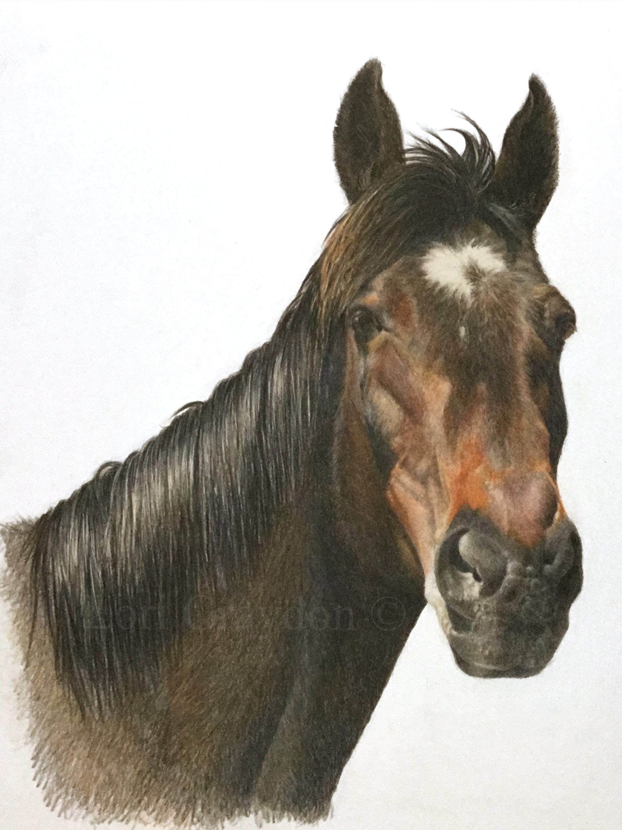 I love drawing animals but horses and dogs seem to be the most requested for commissions. While most of my work has been drawing, I also work in water colour portraits.